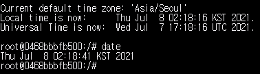 date 명령어로 확인하면 KST 타임존이 적용된 것을 볼 수 있다.